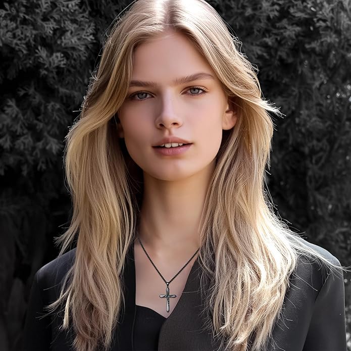 - Black Cross Pendant Material: Black cross necklce for men is made of 925 sterling silver, ensuring its glossiness and durability, hypoallergenic and safe for sensitive skin, inlaid with Abalone Shell is sparkling. The intricate detailing and sleek finish make them a standout accessory for any occasion