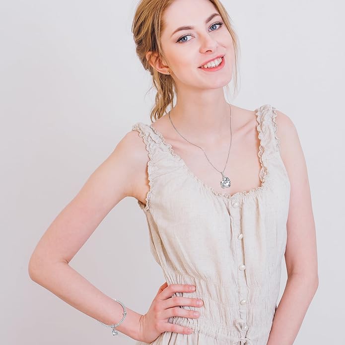 - Exquisite 3-Piece Set: Features a beautifully coordinated bracelet (6.75″ with 2 extender chains), necklace (17″ with 2″ extender), and earrings. Each piece showcases a stunning 57-facet precision-cut heart-shaped stone for exceptional brilliance and elegance.