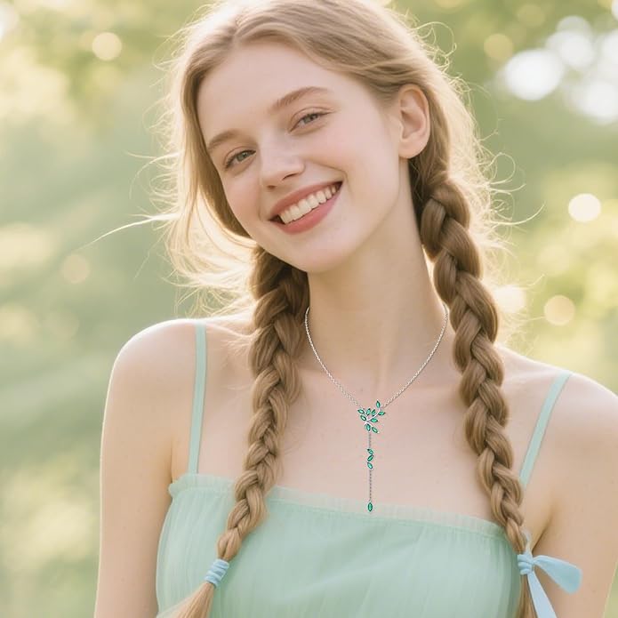 - 【Design concept】: This necklace adopts a Y-shaped and leaf design, and is embellished with green leaf-shaped zircons. Wearing this necklace can add a sense of fashion to you.
