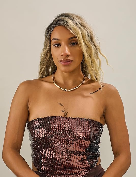 - Gold Plated Choker Necklace: Crafted from durable alloy and plated with polished gold, this gold choker necklace boasts a shiny, reflective surface that will catch the light from every angle