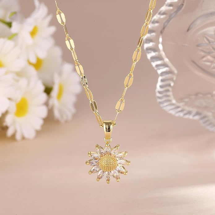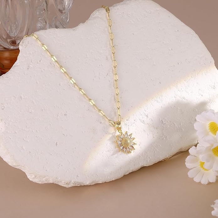 - 【Diamond Necklaces Occasions】The gold necklace for women have good gloss and the sunflower necklace image is exquisitely made.It is a great present for women as birthday, thanksgiving, mother's day, halloween and christmas present