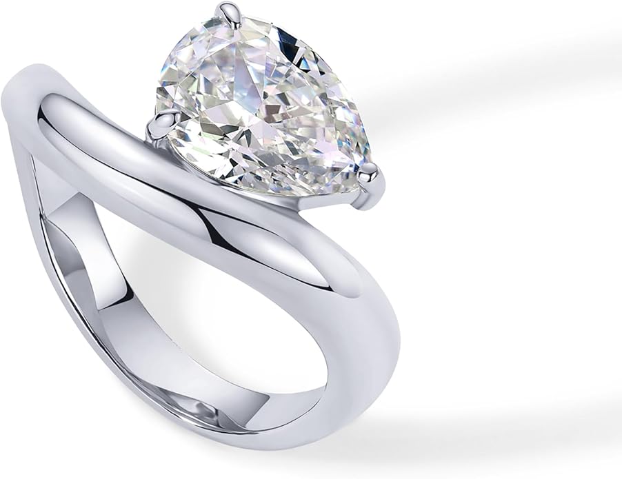 - ELEGANT DESIGN: Catch every glance with a stunning wavy wraparound band and a brilliant sideways 7mm x 10mm pear-shaped stone featuring 88 sparkling facets. A fresh take on classic wedding rings women adore, the PAVOI ring blends timeless elegance with modern flair.