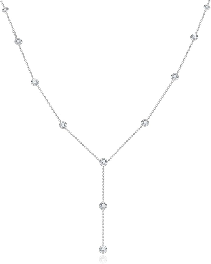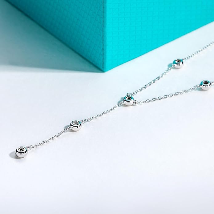 - 【Classic Design】The sparkling round-cut moissanite stones are delicately bezel-set along the slender chain, glimmering like stars scattered across the night sky. Together, they form a minimalist lariat silhouette that feels modern and sophisticated. Timeless classical beauty boosts any casual or elegant formal attire, making you focus on the feast, banquet, meeting, dating, prom, party, or travel, just feel confident to wear it, and be ready to receive many compliments from your friends.
