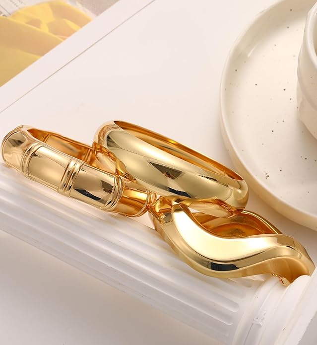 - Quality Materials: Our bangles with high quality alloy, lead-free, nickel-free, hypoallergenic, 14k gold plating and nano-polishing process which is durable and colorfast. The gold finish gives an elegant touch that perfect for women who love to make a statement