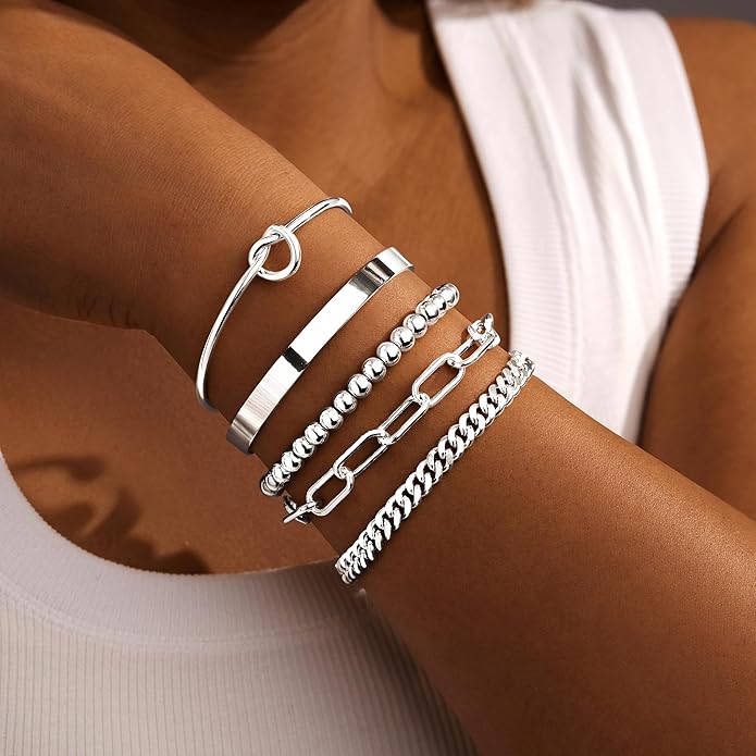 - 【Perfect Gifts】 This stackable silver bracelet for women serves as an exquisite gold jewelry gift, perfect for cherished recipients like wives, mothers, daughters, sisters, or best friends. Ideal for commemorating special occasions including birthdays, anniversaries, Valentine's Day, Christmas, Mother's Day, and Thanksgiving celebrations