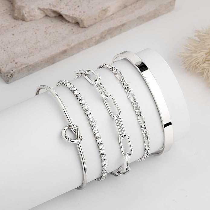 - 【Perfect Gifts】 This stackable silver bracelet for women serves as an exquisite gold jewelry gift, perfect for cherished recipients like wives, mothers, daughters, sisters, or best friends. Ideal for commemorating special occasions including birthdays, anniversaries, Valentine's Day, Christmas, Mother's Day, and Thanksgiving celebrations