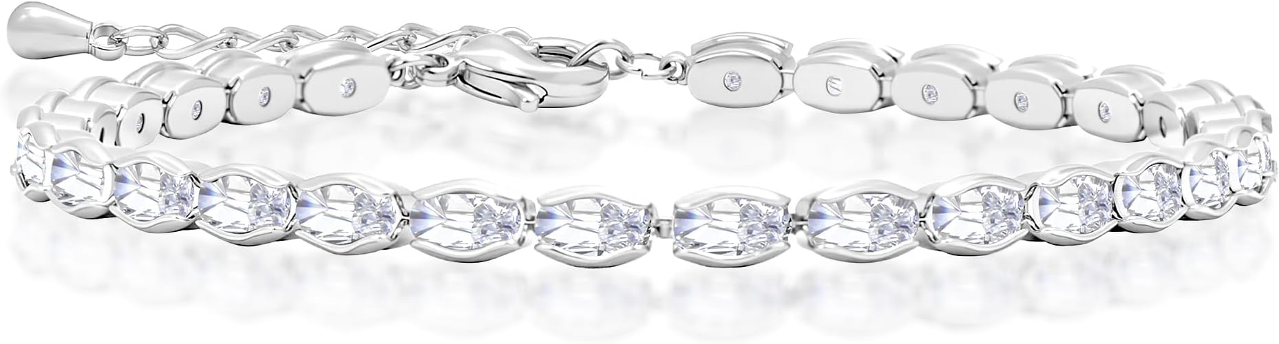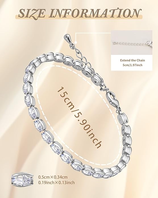 • 💎 【SPARKLING ELEGANCE THAT CAPTIVATES】Crafted with AAA+ cubic zirconia, this cubic zirconia tennis bracelet for women features elegant oval cuts that mimic the brilliance of diamonds. Each stone is securely prong-set for maximum sparkle, offering that iconic “Hearts and Arrows” shine. A truly brilliant tennis bracelet for women — perfect for adding radiance to your everyday bracelet for women collection