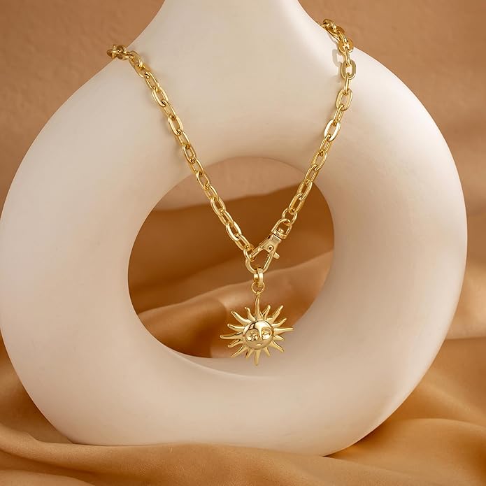 CHESKY Layered Necklaces for Women Trendy, Dainty 14k Gold Plated Pendant Necklace Layering Necklace for Women Non Tarnish Hypoallergenic Sun Gold Necklace Stack Gold Jewelry for Women Gifts