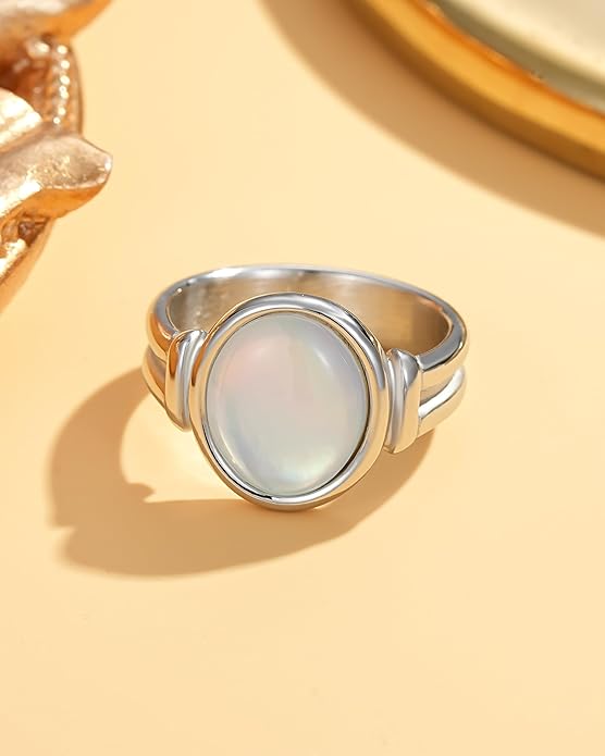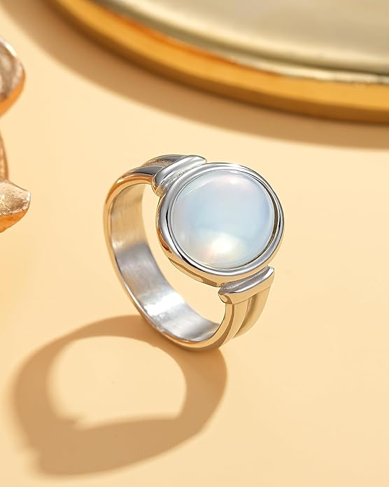- 💝 【Elevate Your Style】Boring with plain gold accessories jewelry? Embrace this non tarnish gold rings with natural mother of pearls, so unique and chic that will add a fashion look to your outfit.