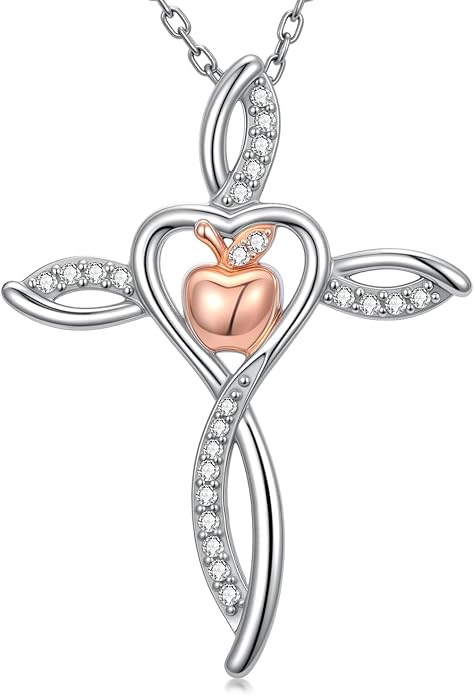 - CROSS APPLE NECKLACE: Cross symbolises love and salvation and can bring unlimited good luck. Apple symbolizes knowledge and wisdom. This necklace combines cross with apple, perfect as a Teacher's Day gift for your teacher, mother and friends