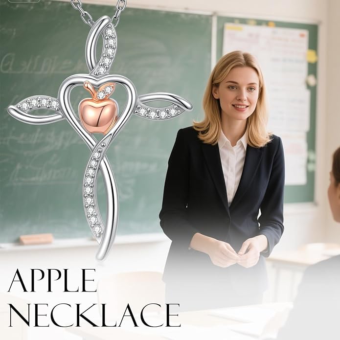 - APPLE CROSS NECKLACE MATERIAL: The apple necklace for teacher is made of 925 sterling silver and zircon, the surface of the teachers day necklace is printed with S925, does not contain nickel and lead, people with sensitive skin can also wear it