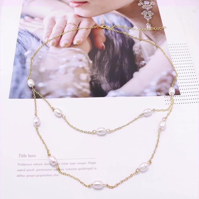 - Material&Size: The length of pearl collar necklace is 16"+ 3"extender,16k gold plated,the stunning small oval pearls charms adorned on chains,secure and durable,it won't fade easily,hypoallergenic. these delicately designed gold pearl necklace effortlessly enhance your style, offering a touch of sophistication for every occasion.