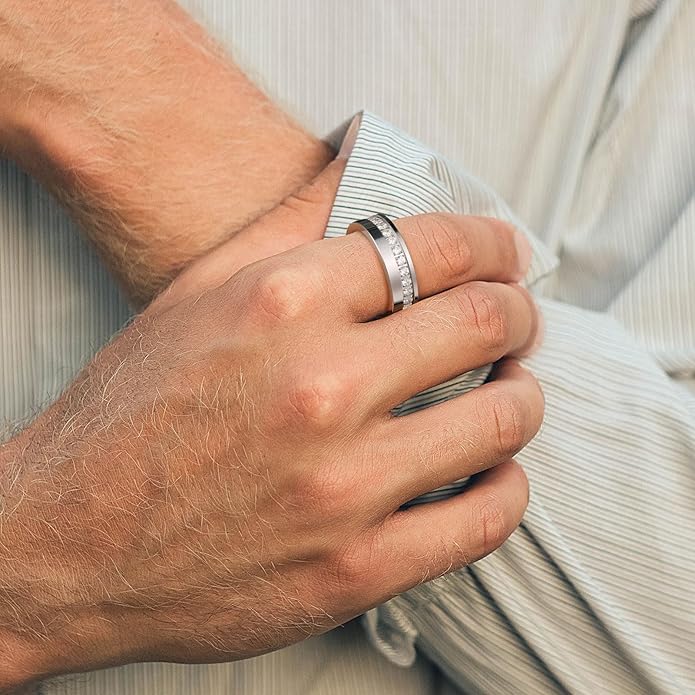 King Will Mens Tungsten Wedding Band with Cubic Zircon Inlay 7mm/8mm Flat Cut Comfort Fit Engagement Rings