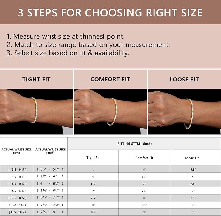 • ใ€Premium Tennis Braceletใ€‘6.0-8.5 inch tennis bracelet with high quality 3MM-5MM width ๐€๐€๐€๐€๐€+ ๐ซ๐จ๐ฎ๐ง๐ ๐œ๐ฎ๐ญ ๐œ๐ฎ๐›๐ข๐œ ๐ณ๐ข๐ซ๐จ๐œ๐ง๐ข๐š, cubic zirocnia are definitely sparkly , while hits the lights, it present so sparkly.The secure bezel setting protects each bracket stone while delivering a sleek, polished look that complements any outfitโ€”making it a timeless addition to any collection of gold bracelets for women.