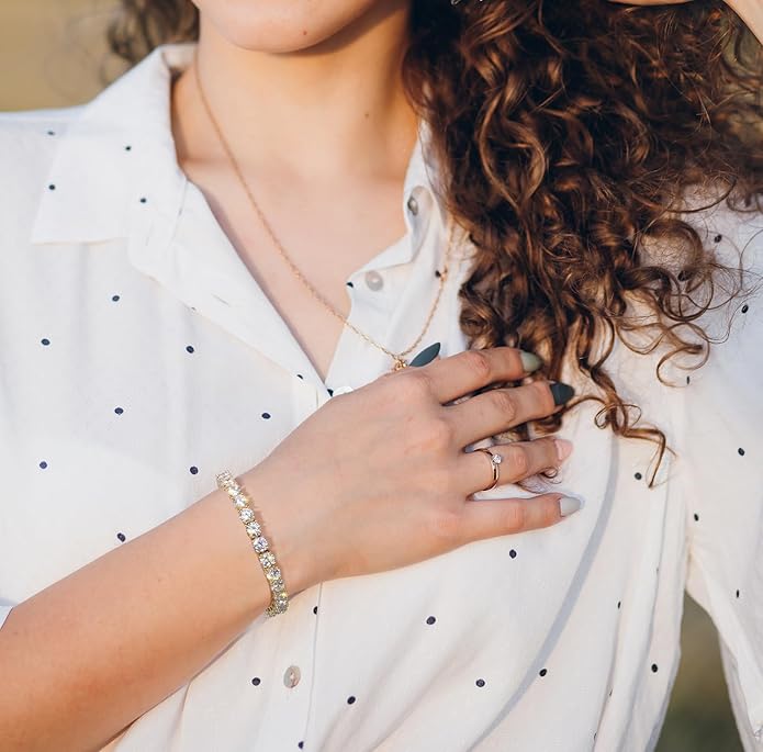 - ใPremium Tennis Braceletใ6.0-8.5 inch tennis bracelet with high quality 3MM-5MM width ๐๐๐๐๐+ ๐ซ๐จ๐ฎ๐ง๐ ๐๐ฎ๐ญ ๐๐ฎ๐๐ข๐ ๐ณ๐ข๐ซ๐จ๐๐ง๐ข๐, cubic zirocnia are definitely sparkly , while hits the lights, it present so sparkly.The secure bezel setting protects each bracket stone while delivering a sleek, polished look that complements any outfitโmaking it a timeless addition to any collection of gold bracelets for women.