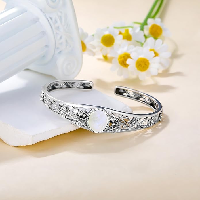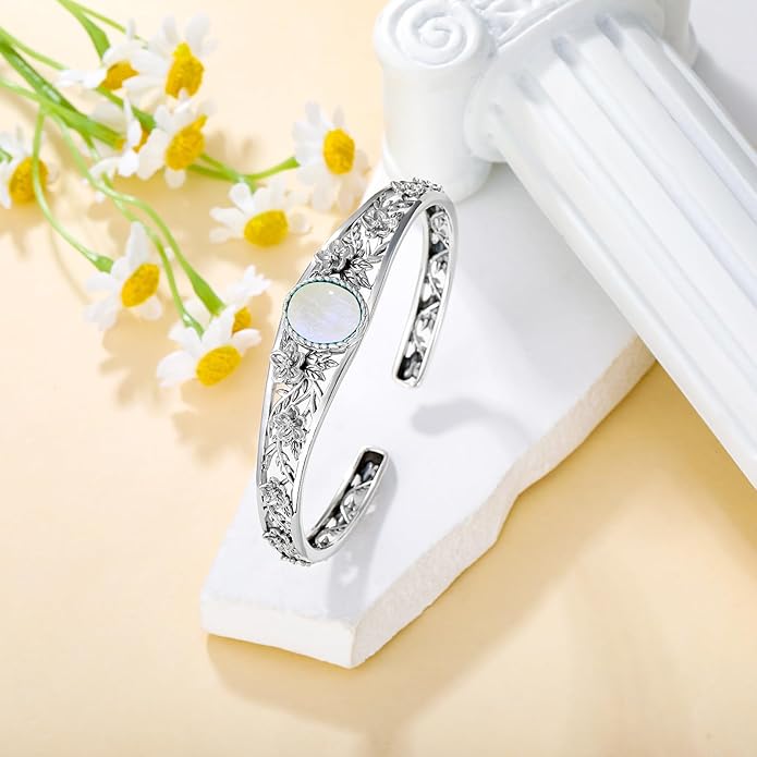 - Eye-Catching Quality - Admire the sheer beauty of your handmade 925 sterling silver Moonstone bangle! This Natural Moonstone's Energy and Healing powers will be a Positive energy wave that will make you shine brighter.