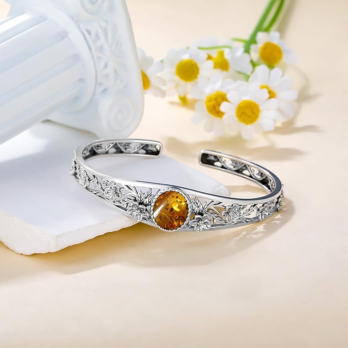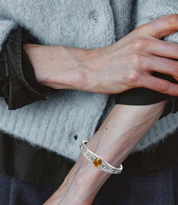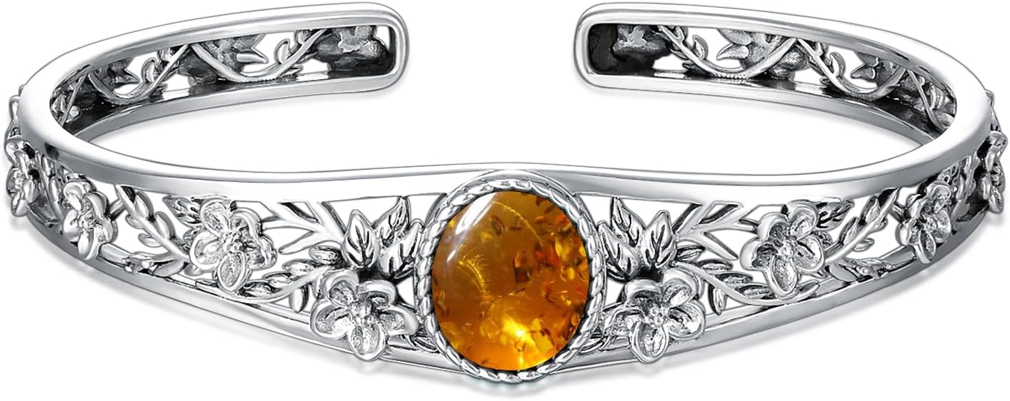 - Eye-Catching Quality - Admire the sheer beauty of your handmade 925 sterling silver amber bangle! This Natural amber's Energy and Healing powers will be a Positive energy wave that will make you shine brighter.
