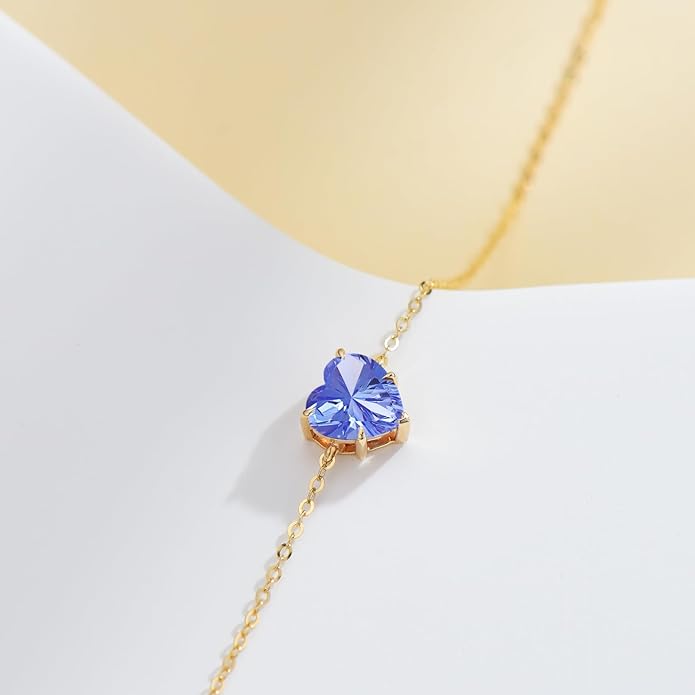 14k Gold Love Heart Gemstone Bracelet for Women,7MM Heart-cut Created Birthstone Anniversary Birthday Mother's Day Bracelets Jewelry for Mom Her 6.5''+2''